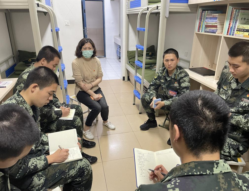为进一步做好疫情防控工作,落实学校疫情防控要求,增强我院学生防控意识,做到科学防疫,高效防疫。2022年4月10日,士官与军事教育学院各连以宿舍为单位召开班务会,院长袁周、团总支书记李晓敏等A岗所有领导老师走进宿舍和同学们深入交流并指导班务会。