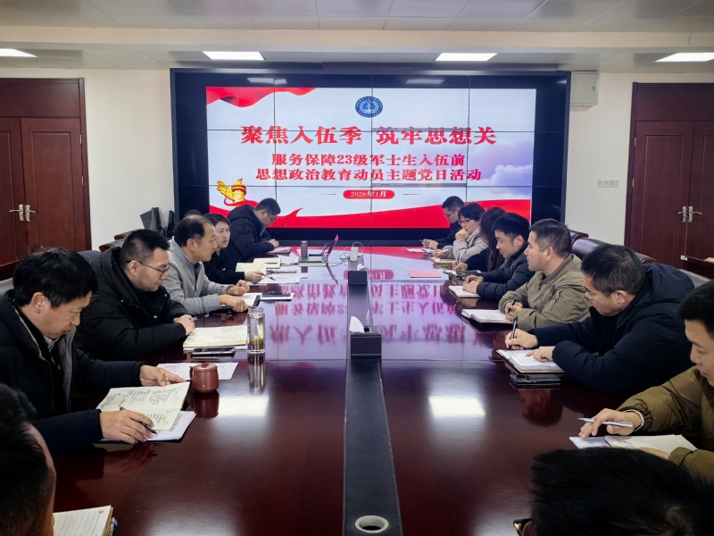 为保障2023级定向培养军士顺利入伍,筑牢思想根基,我院直属党支部于2026年1月7日组织开展“聚焦入伍季 筑牢思想关——服务保障23级定向军士入伍前思想政治教育动员”主题党日活动。活动紧密围绕23级入伍关键阶段中心工作,旨在统一思想、部署任务,提供坚实思想政治保障。