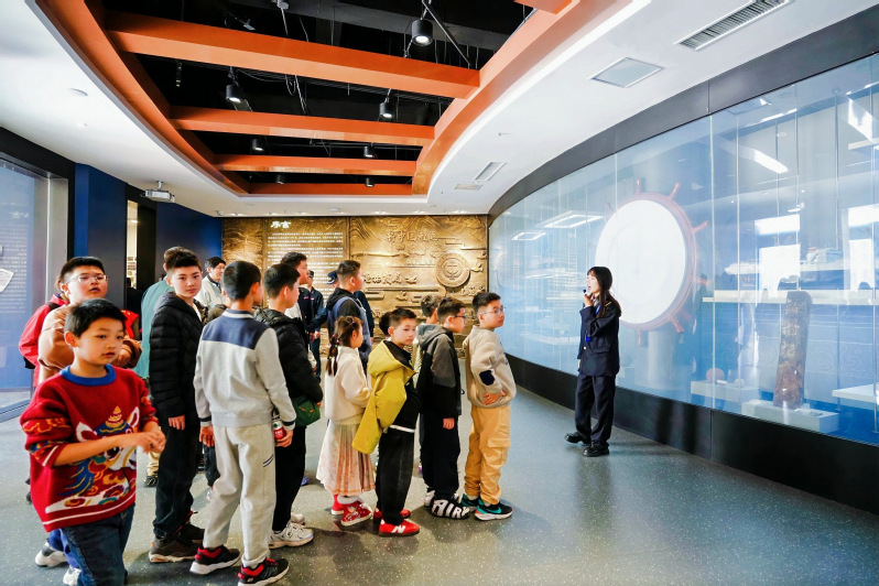 随后,营员们先后走进校史馆与郑和纪念馆,在一件件实物、一幅幅图片、一段段文字中,回顾学校的发展历程与办学成果,感悟学校深厚的育人底蕴;深入了解郑和下西洋的伟大航海壮举,领略我国古代航海事业的辉煌成就,学习先辈不畏艰险、勇于探索的航海精神,厚植海洋情怀与家国情怀。参观过程中,孩子们驻足凝视、认真聆听,积极提问,在历史与现实的交汇中,增强民族自豪感与国防意识。
