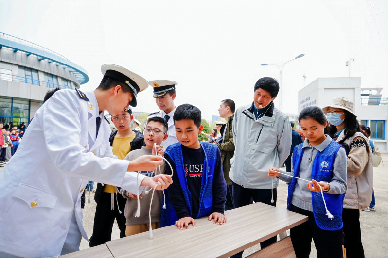 为深入推进国防教育普及,深化校地协同育人,丰富中小学生春假课余生活,4月1日,借助学校春假日校园开放契机,在学校继续教育学院的统一安排与大力支持下,国防教育与定向培养学院关工委积极对接淳化街道桥头社区,精心组织开展航海四季营活动,邀请社区七十余名中小学生及家长走进校园,沉浸式体验航海文化、学习国防知识,开启一场别开生面的航海研学之旅。