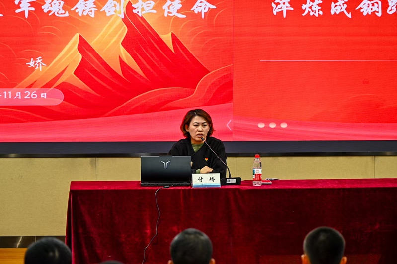 开班仪式结束后,付娇为全体学员作了《淬炼成钢跟党走军魂铸剑担使命》的主题讲座。讲座围绕坚定理想信念、铸牢军魂意识、担当强军使命等维度展开,通过生动的案例和深入浅出地讲解,引导学员们深刻理解新时代军士生的责任与担当,为后续培训奠定了坚实的思想基础。